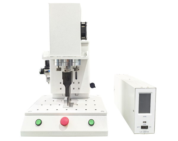 小型超声波塑料焊接机由20k2000w超声波发生器和标准机架组成,机架牢固,多用于无纺布织带、魔术贴绑带压合焊接以及织带的切割。