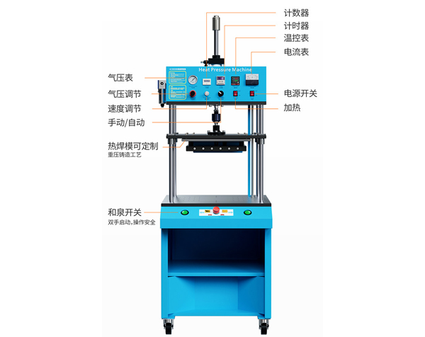 公司生产的中型热熔机,功率为3000W,用了塑料件的铆压铆点、螺母埋置、压合等,设备应用广泛。